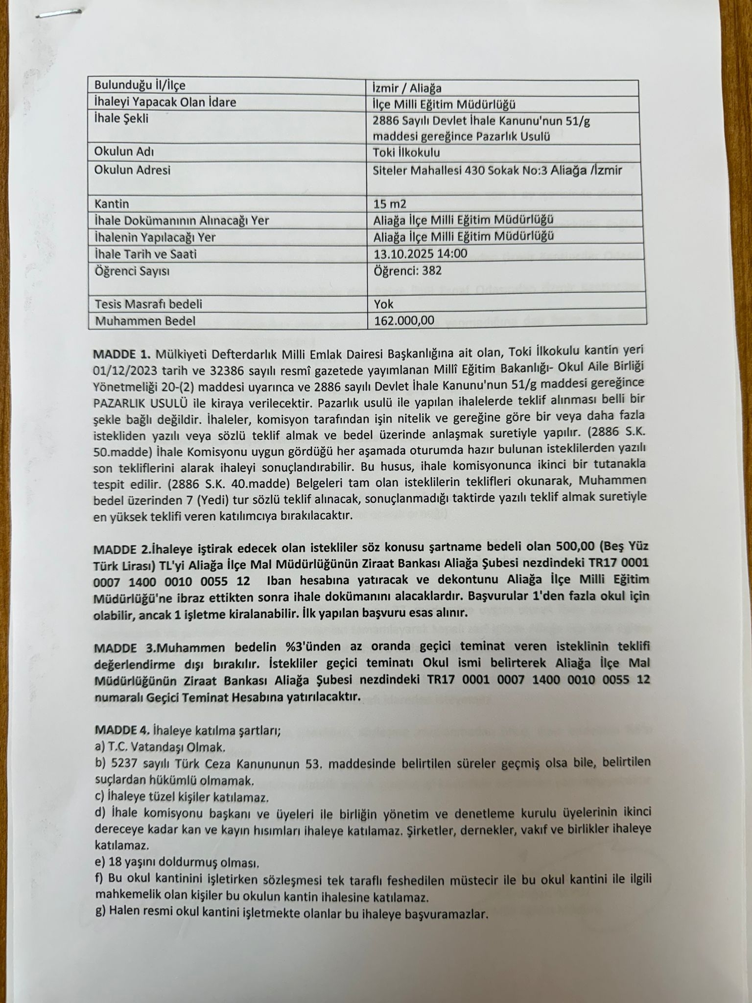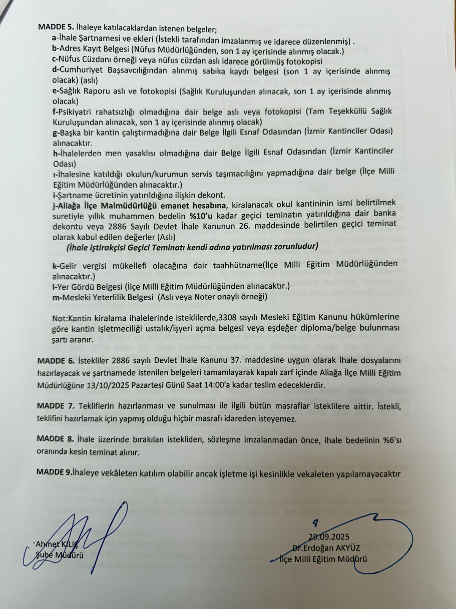 İZMİR ALİAĞA İLÇE MİLLÎ EĞİTİM MÜDÜRLÜĞÜ